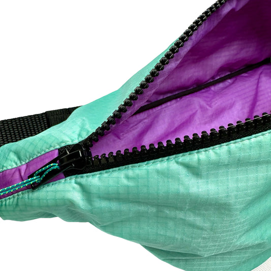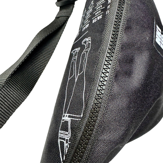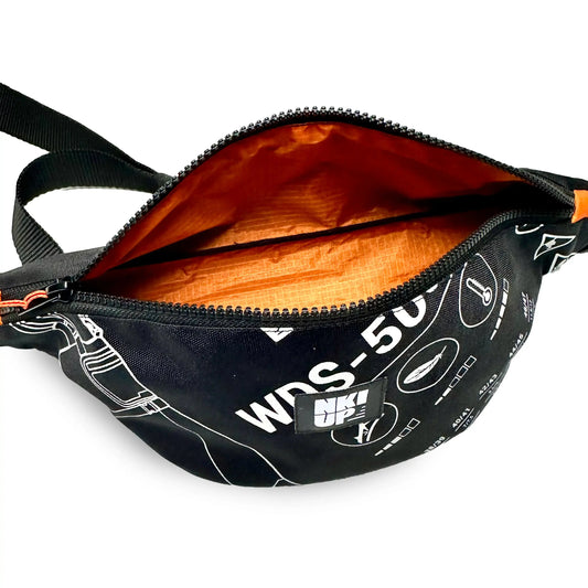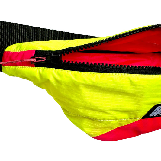Fabriqué à partir de waders de pêche et de voiles de parapente upcyclés.
